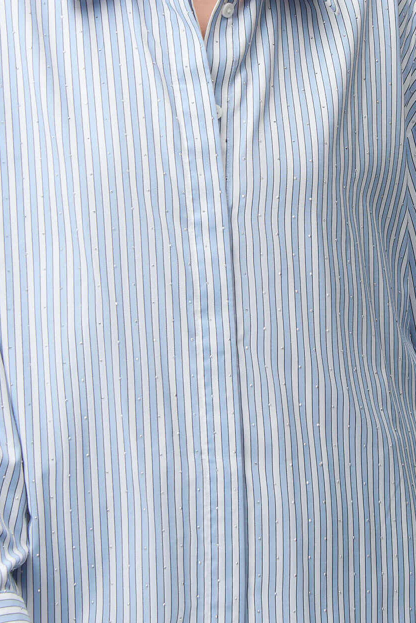 Blue Horizon Tencel Stripe Print Boxy Shirt With Diamontes 261931